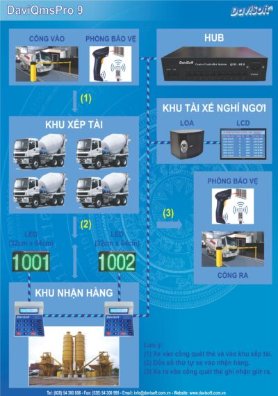 Model: DaviQmsPro 9 Mô hình cấp số thứ tự quẹt thẻ xe vào cổng nhận hàng
