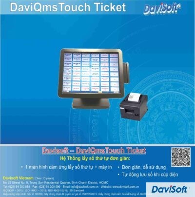 Model: DaviQmsTouch Ticket Hệ thống lấy số thứ tự đơn giản